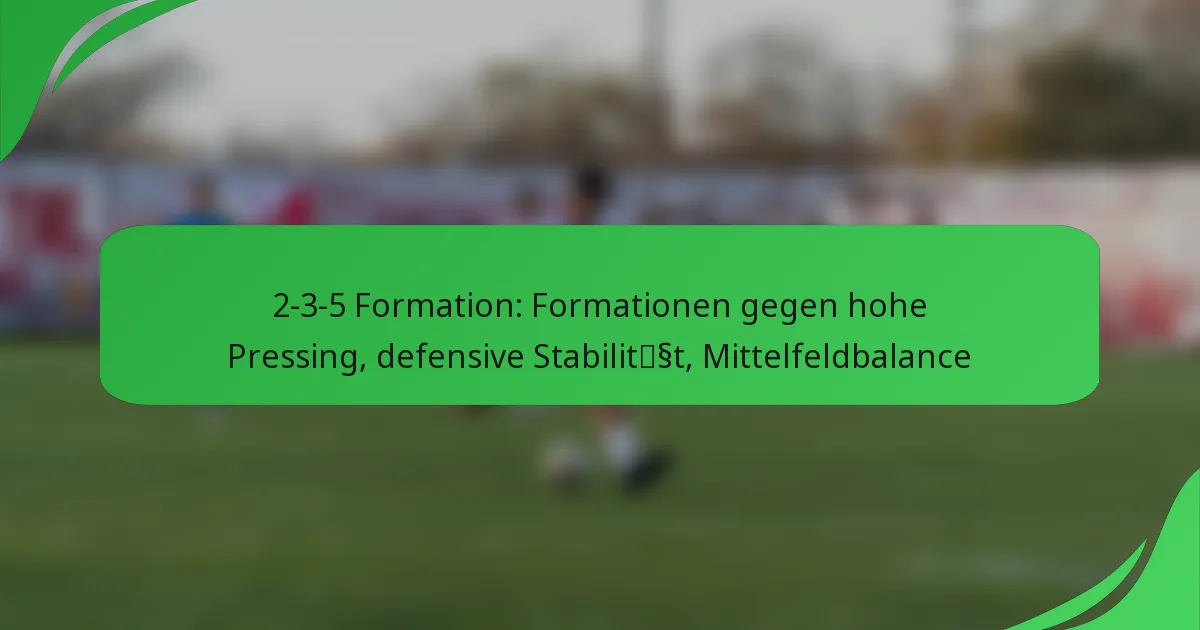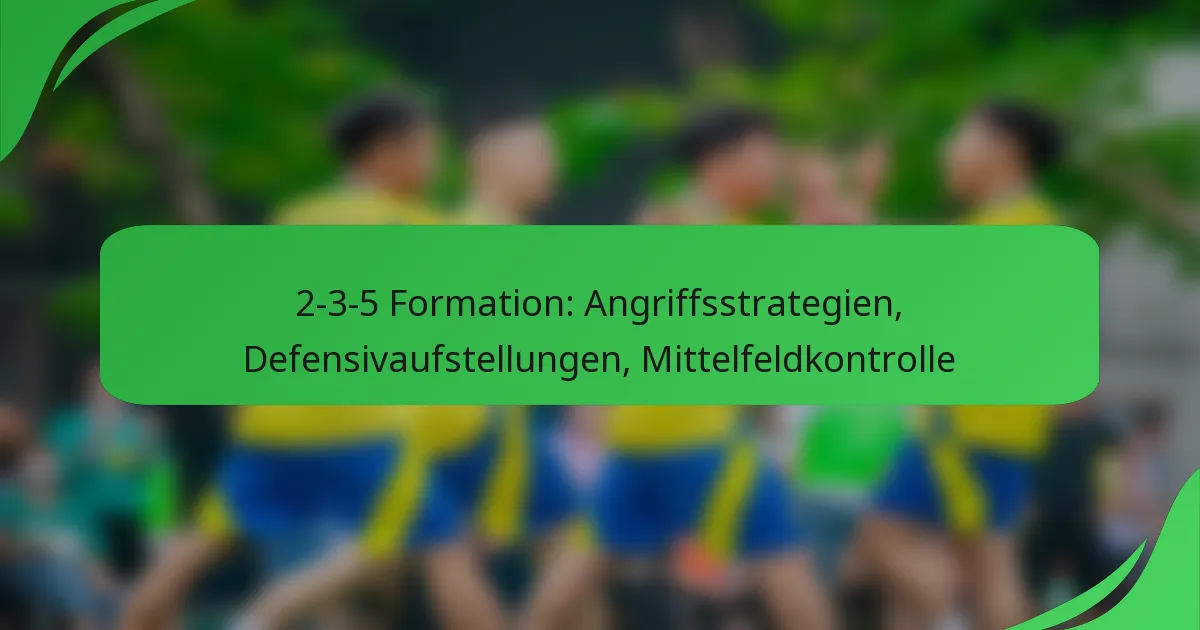 Die 2-3-5 Fussballformation ist ein klassisches taktisches System, das offensives Spiel priorisiert und aus zwei Verteidigern, drei Mittelfeldspielern und fünf Stürmern besteht. Diese Formation ist darauf ausgelegt, zahlreiche Tormöglichkeiten zu schaffen, während sie eine grundlegende defensive Struktur aufrechterhält, was sie zu einer beliebten Wahl für Teams macht, die im Angriff dominieren möchten. Ihre Abhängigkeit von einem starken Mittelfeld kann jedoch auch defensive Schwächen offenbaren, wenn sie nicht effektiv gemanagt wird.