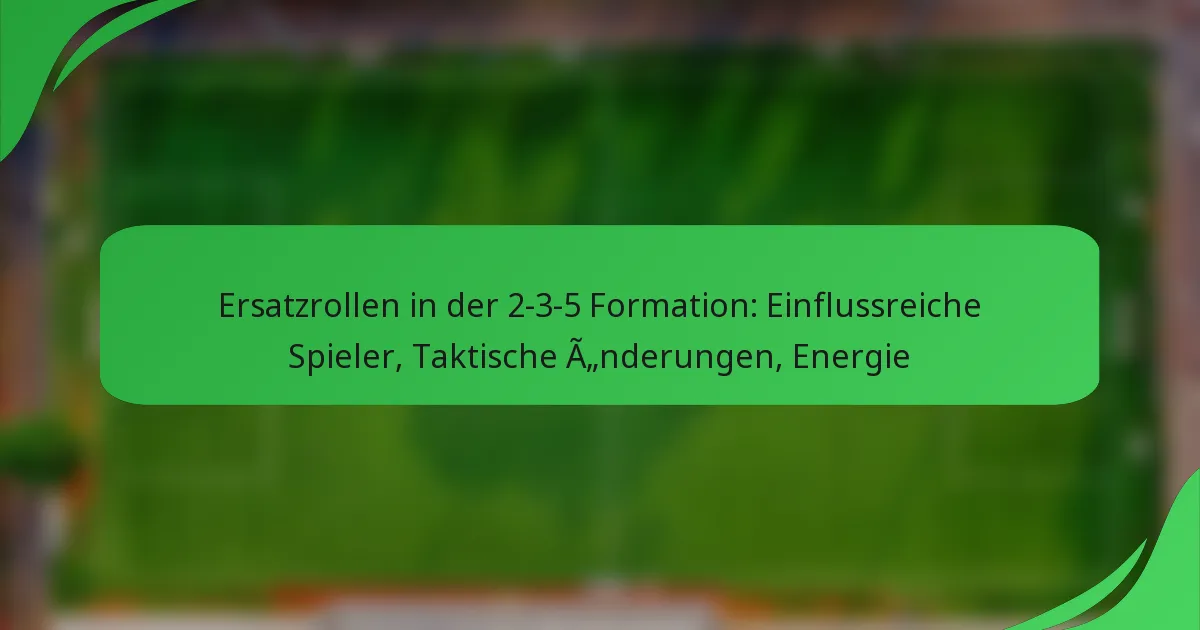 Read MoreErsatzrollen in der 2-3-5-Formation: Einflussreiche Spieler, taktische Änderungen, Energie