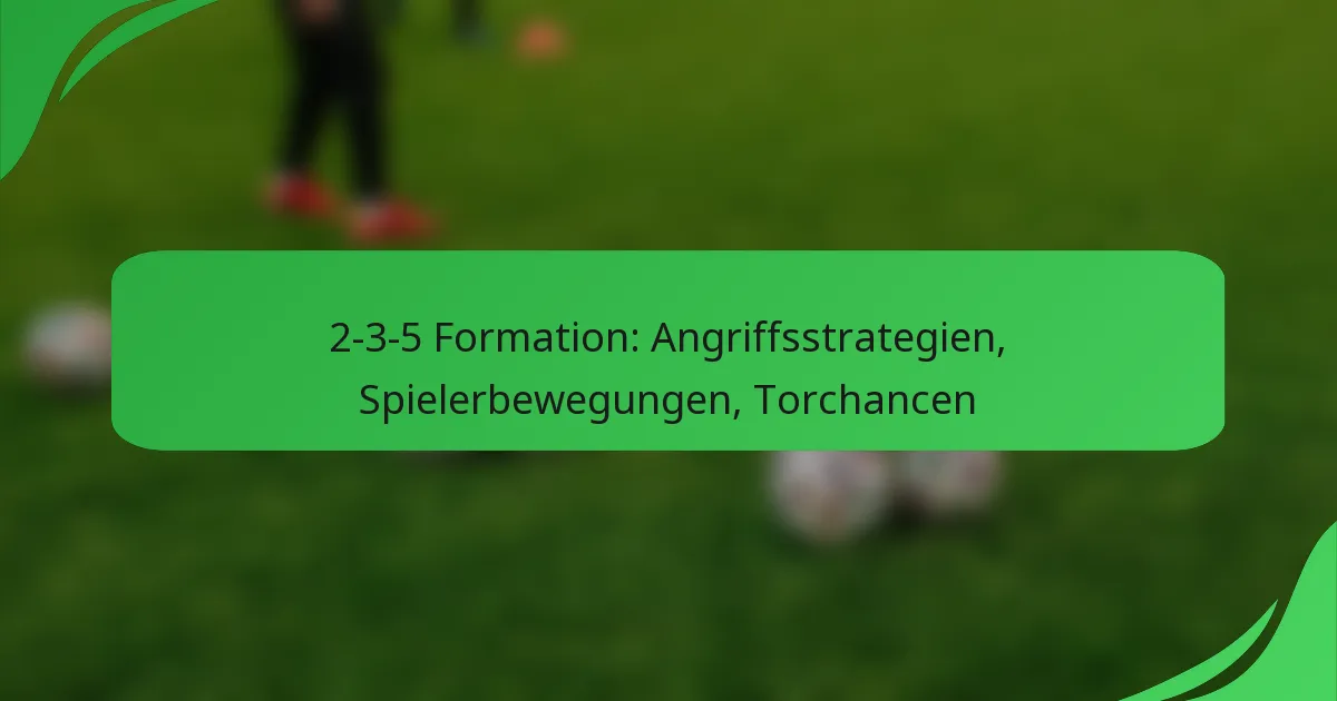 Die 2-3-5-Formation verwendet ein charakteristisches Angriffsmuster, das Breite und Tiefe betont und es den Teams ermöglicht, zahlreiche Torchancen zu schaffen. Diese Struktur positioniert fünf Stürmer, was dynamische Bewegungen und strategische Spielzüge ermöglicht, die defensive Schwächen ausnutzen können.