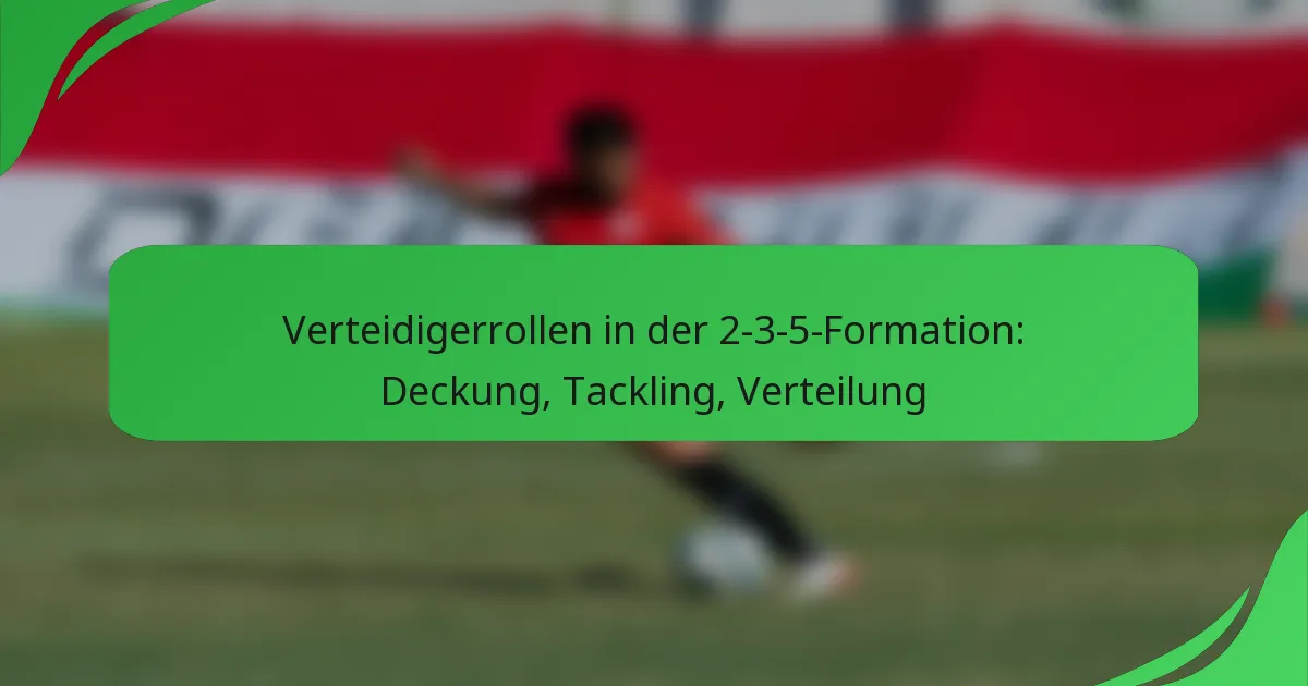 Die 2-3-5-Formation ist ein traditionelles Fussballsystem, das offensives Spiel betont und auf zwei Verteidiger setzt, die eine wesentliche Abdeckung bieten. Diese Verteidiger spielen eine entscheidende Rolle beim Markieren von Gegnern und setzen sowohl Manndeckung als auch Zonenverteidigung ein, um Tormöglichkeiten zu vereiteln. Darüber hinaus ist effektives Tackling entscheidend, um den Ball zurückzugewinnen und defensive Stabilität zu gewährleisten, was ein Gleichgewicht zwischen Aggressivität und Vorsicht in ihrem Ansatz erfordert.