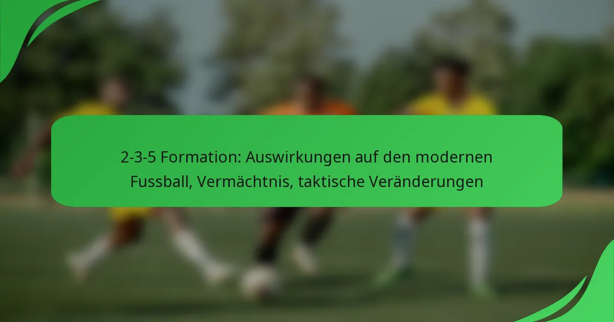 Die 2-3-5-Formation ist ein klassisches Fussball-Setup, das zwei Verteidiger, drei Mittelfeldspieler und fünf Stürmer umfasst und den offensiven Spielstil betont. Ihre historische Bedeutung hat die Trainerstile und die taktische Ausbildung geprägt, was zu einem Fokus auf offensive Strategien und positionsbezogene Flexibilität geführt hat. Trainer, die diese Formation nutzen, müssen ihre Trainingsmethoden anpassen, um die Rollen […]