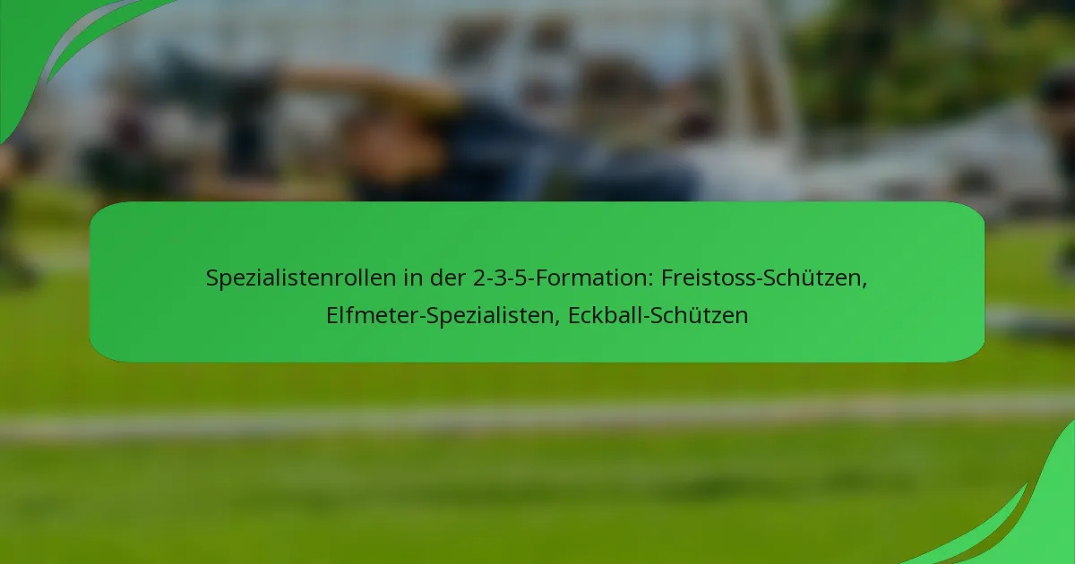 In der 2-3-5-Formation sind die Rollen der Freistoßschützen, Strafstoßspezialisten und Eckstoßschützen entscheidend, um das Torpotenzial bei Standardsituationen zu erhöhen. Jeder Spezialist bringt einzigartige Fähigkeiten und Strategien mit, die den Ausgang des Spiels erheblich beeinflussen können, wodurch ihre Beiträge für den Teamerfolg unerlässlich sind.